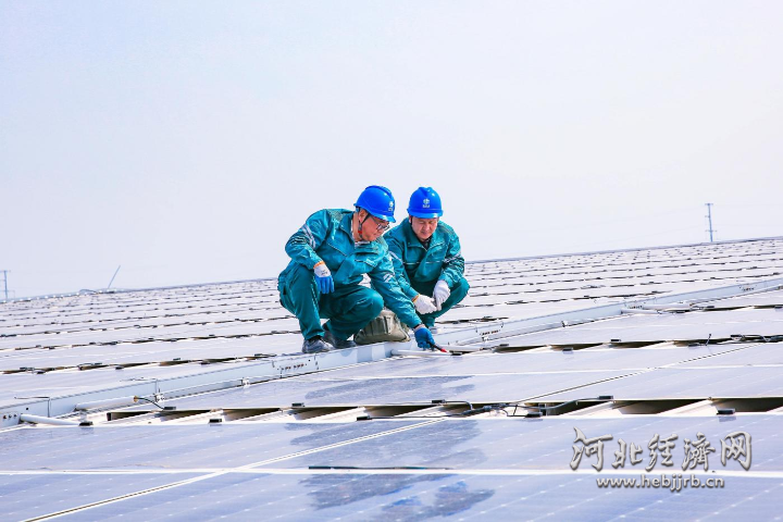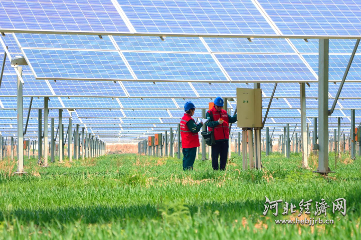 国网无极供电公司工作人员在牛辛庄村光伏电站检查设备运行情况。仝云涛 摄