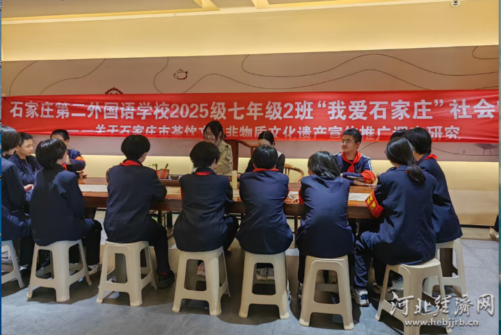 河北经济日报讯(通讯员 聂翠翠 张梦芸)为深入挖掘家乡文化底蕴,传承非物质文化遗产,2026年4月6日,石家庄第二外国语学校2025级七年级2班全体同学,走进赵州茶韵文化空间,开展“我爱石家庄”主题社会实践活动,围绕石家庄市茶饮文化非物质文化遗产的宣传推广展开实地调研,并就近参观赵州桥,聆听专业讲解,在行走中感悟家乡历史与文化的魅力。